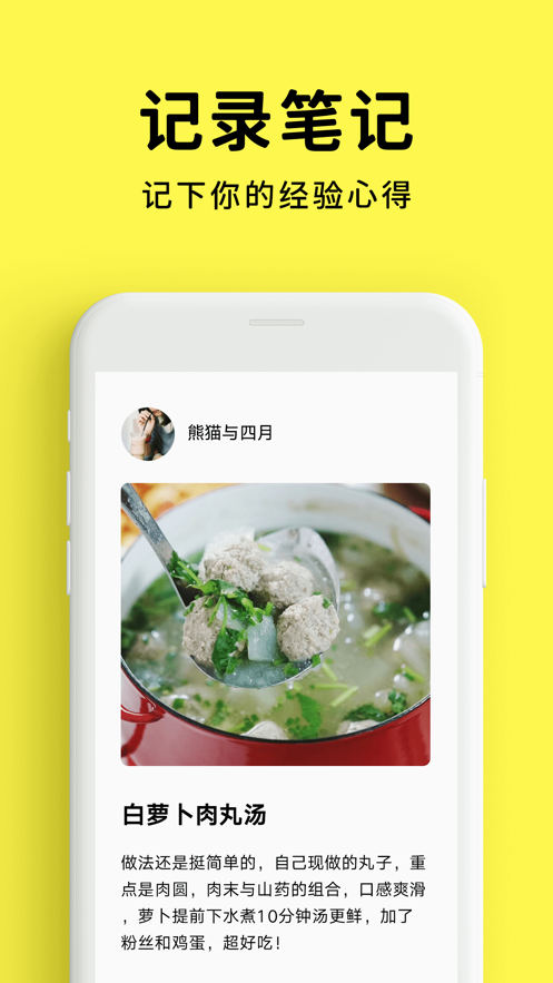 • 「笔记」:供用户记录下厨心得,展示跟做的「买家秀」,与饭友分享做饭经验。