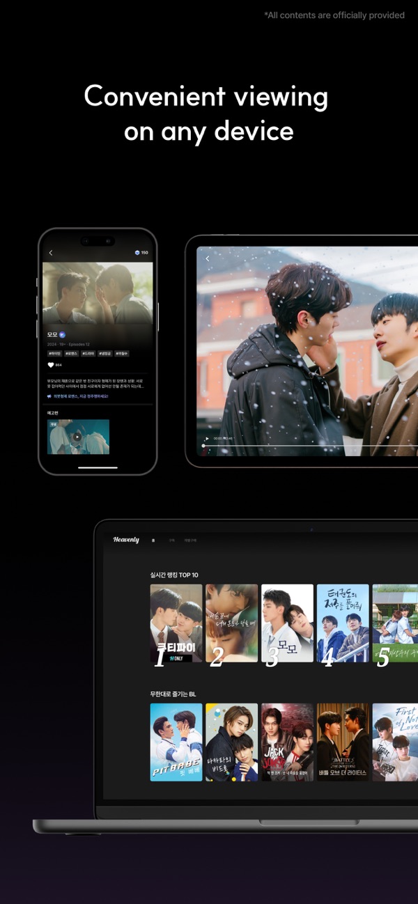 Heavenly提供超2000部BL剧,涵盖韩、泰、日、台等地作品,如《跆拳道诅咒》《甜心派》等。每周更新,韩剧首播后最快上线。有顶级、经典及新剧,风格多样,包括纯爱、痴迷等。能满足不同口味,让浪漫照进现实,带你体验全球BL剧。
